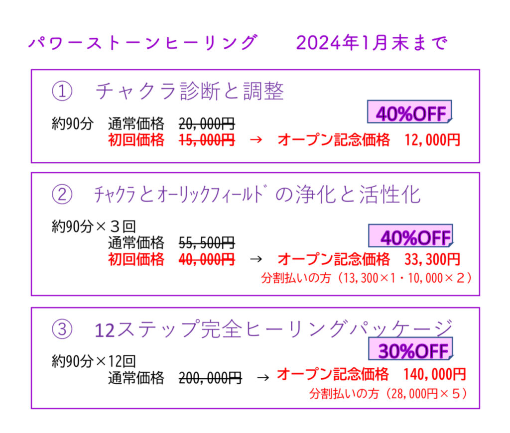 2ヶ月コース・3ヶ月コースはお試しセッションをお申し込み、ヒーリングセッションをお申し込みをいただきました際、セッションの中でご説明させていただいております。