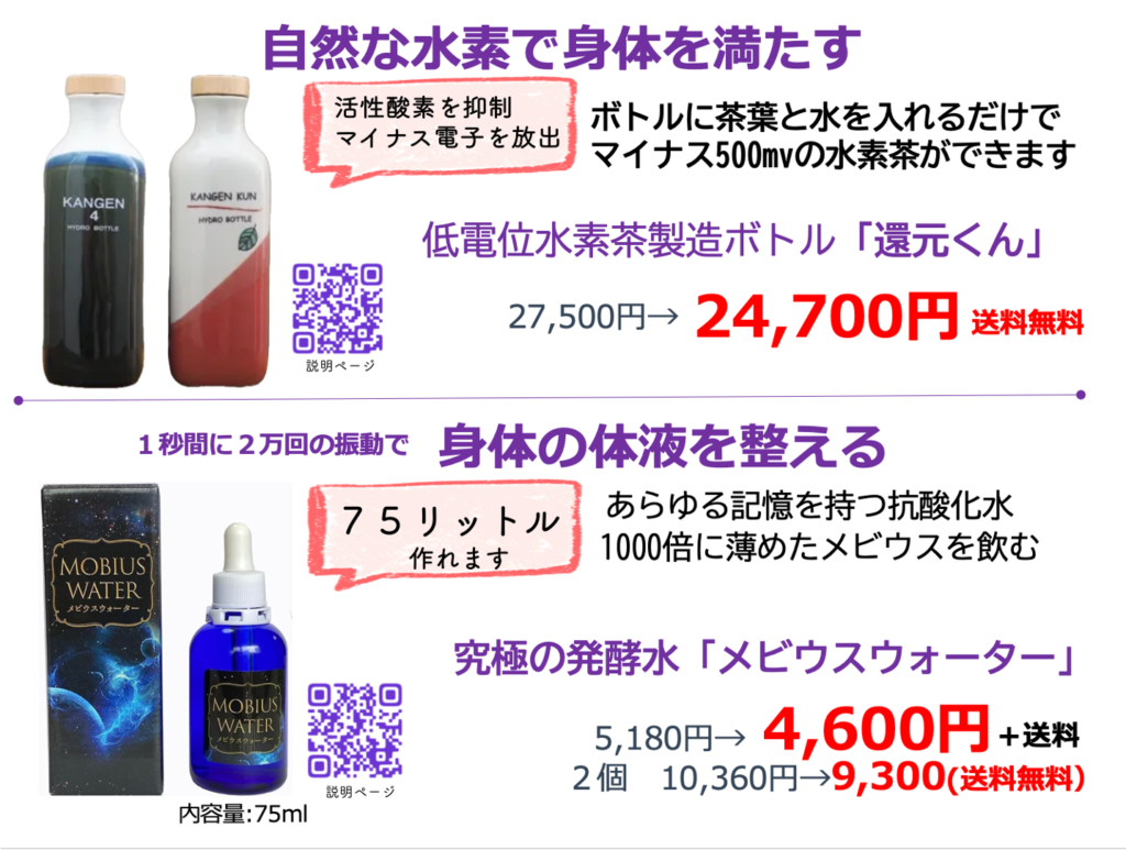 小鹿社長に近いかたは還元ボトルの愛用者が多いそうですが、心臓系の疾患で亡くなる人が増えてきたため、心臓対策にメビウスグリーンを発売したと伺いました。