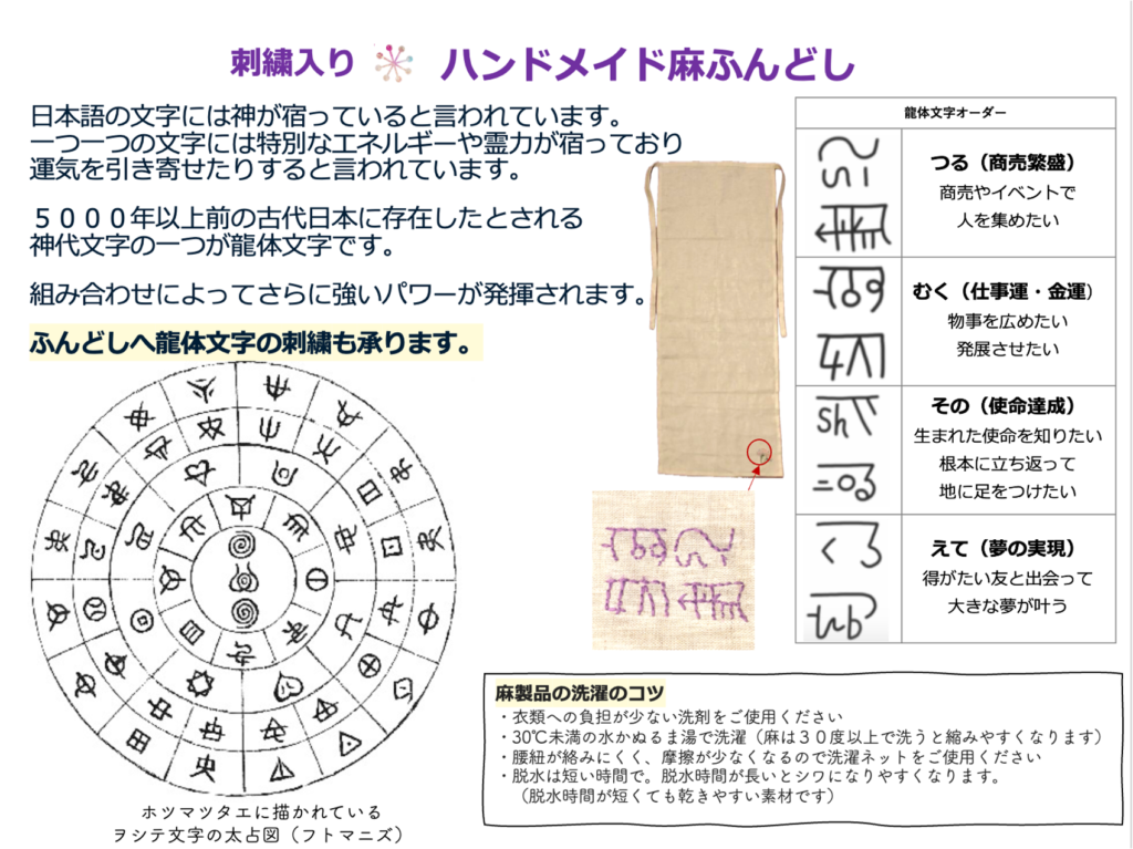 男性もご注文いただけます。お花の刺繍ではなく、龍体文字の刺繍でお届けいたします。