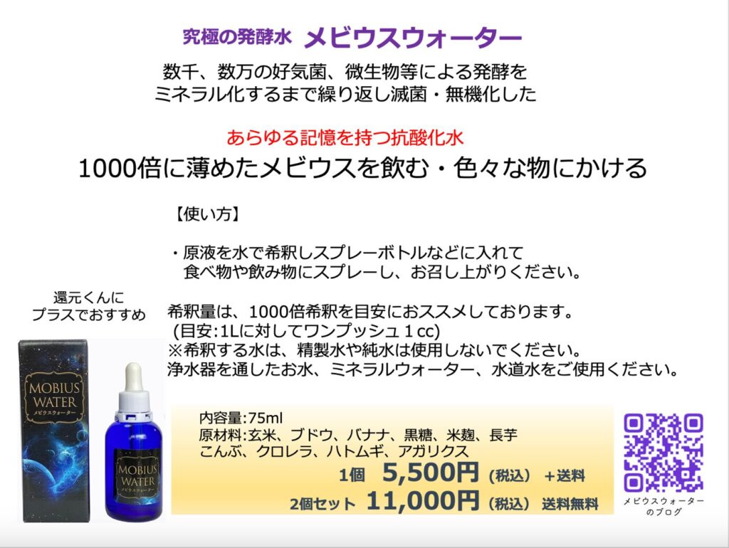 ・QRリンク:究極の発酵水メビウスウォーター
