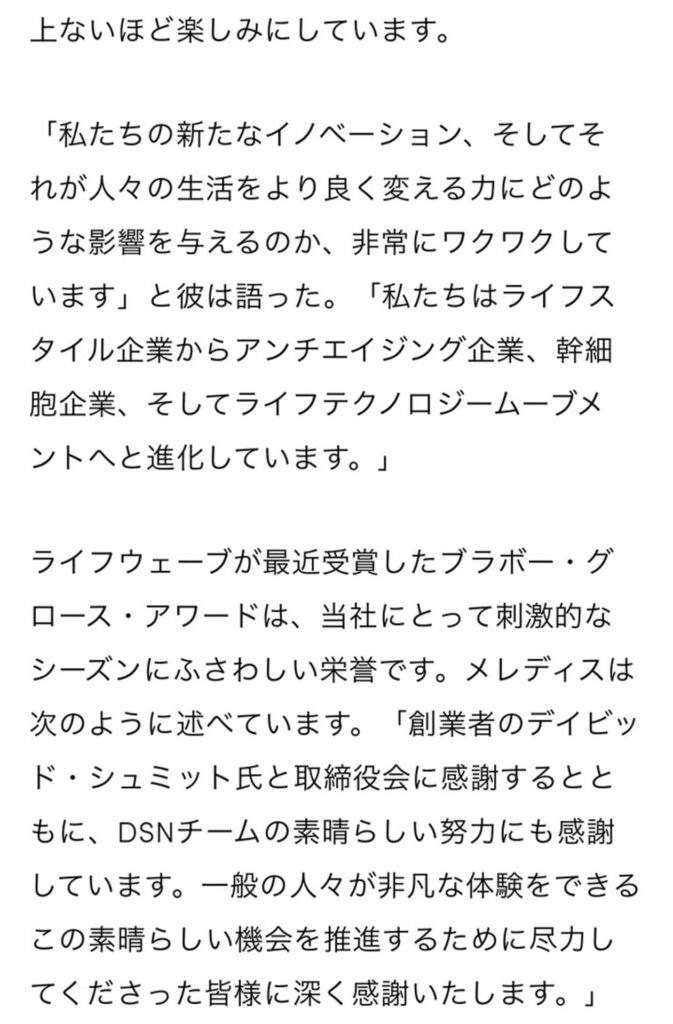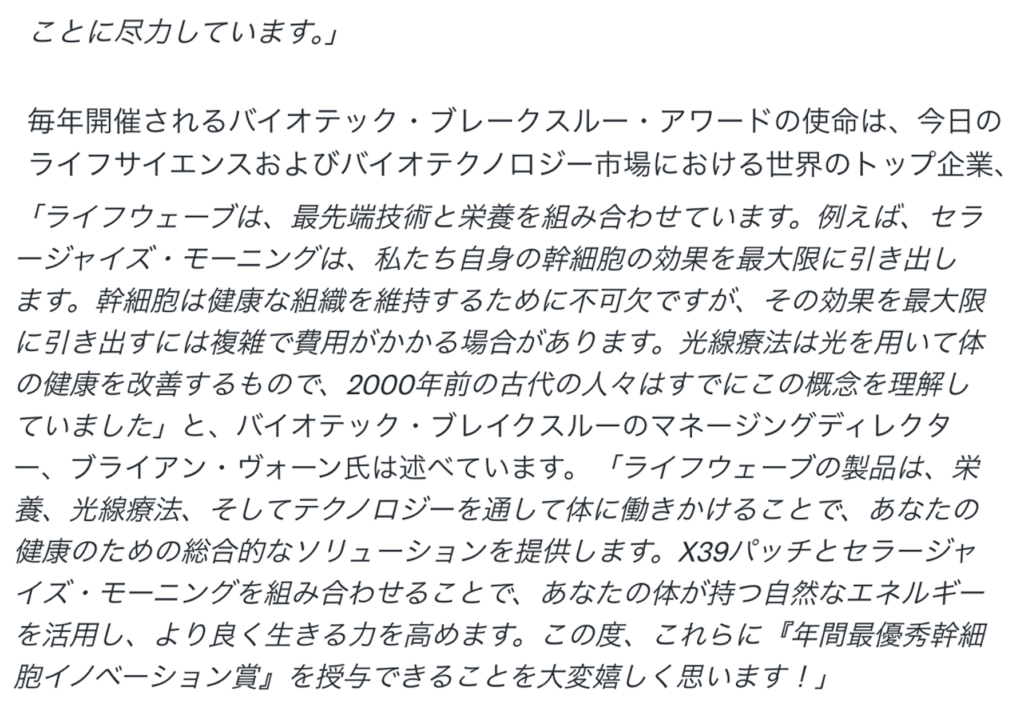 3. ライフウエーブがバイオテック ブレークスルー アワードを受賞