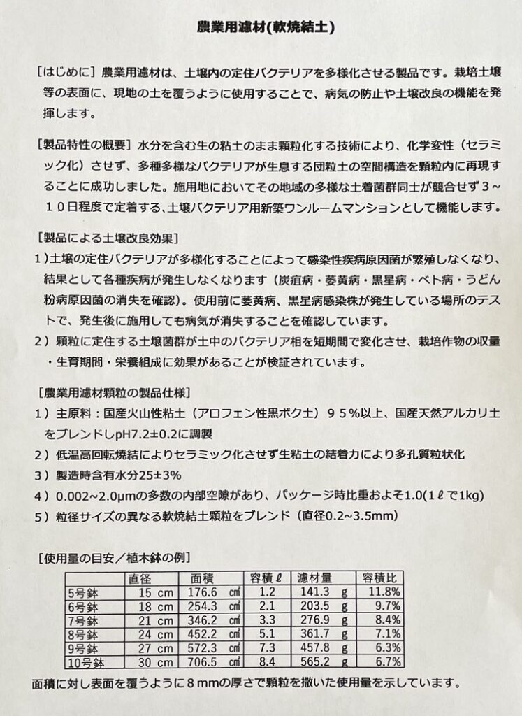 地表が乾いても、内部で土と連絡して、濾材顆粒内部は水分ゼロには、なかなかなりませんのでご安心ください。