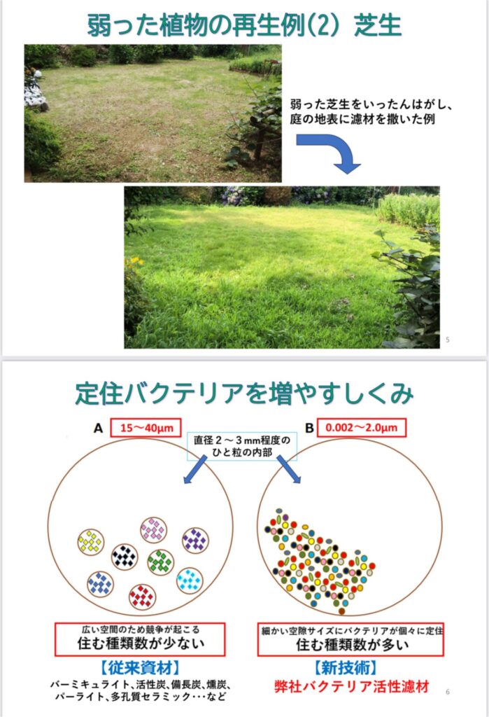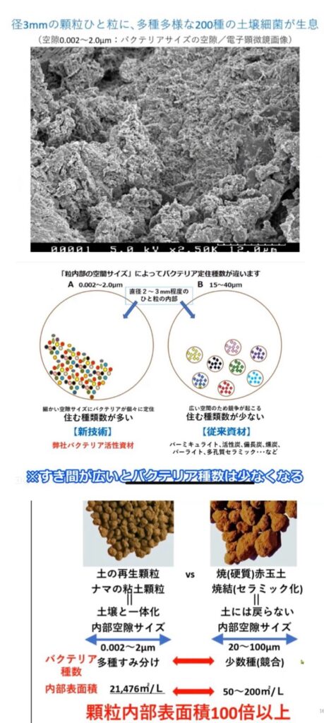 (1)今回の資材は撒いたその場所の定住バクテリアの種数を増やすものです