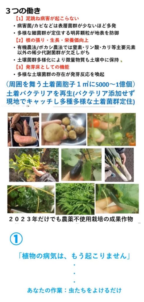 (4)つい1か月前まで農薬を撒いて近代型農業を続けてきていた場所に対してすら、この資材に切り替えての効果がすぐ出ることを何度も経験しています