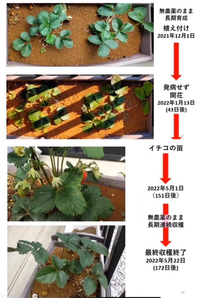 (3)これまでに、すぐ隣りの株に農薬が撒かれているバラ園などで、比較テストを行い、資材による病気殲滅などの効果が確認できています