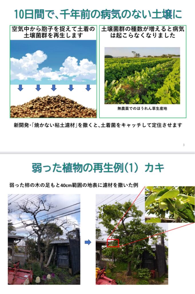 しっかり千年前の自然の土ができあがれば、今度は、それを、製品と同じように「タネ土」として別の場所の土壌改良客土としても使えます。