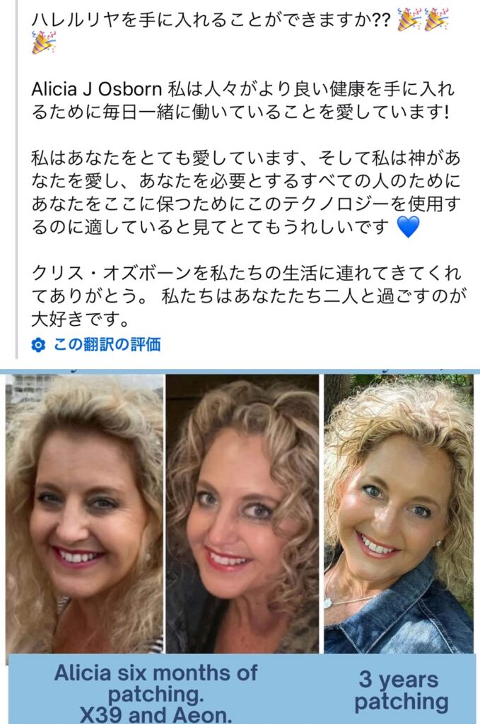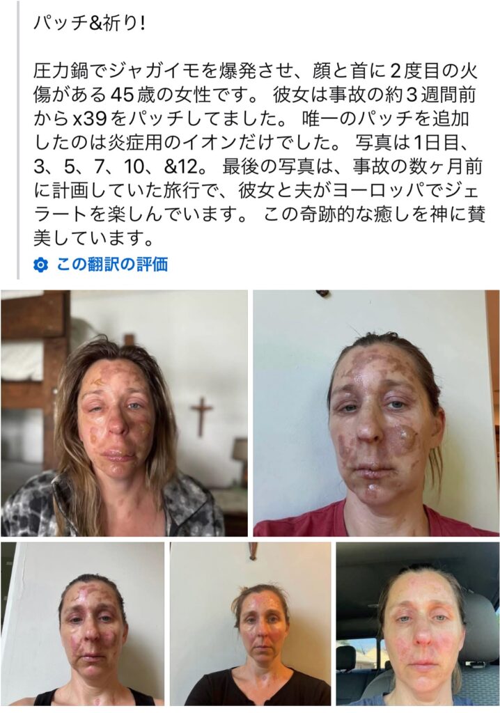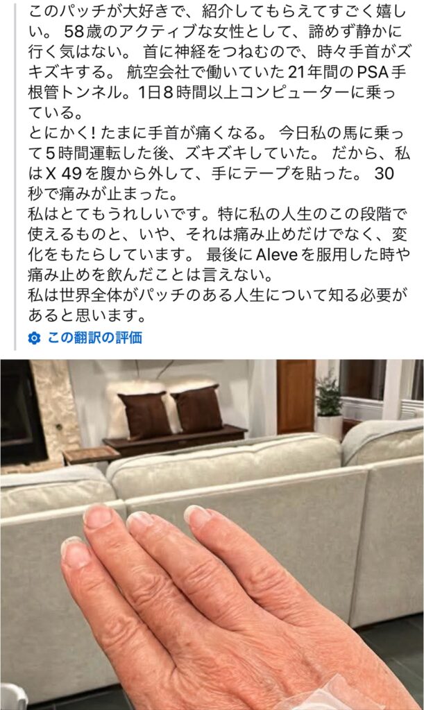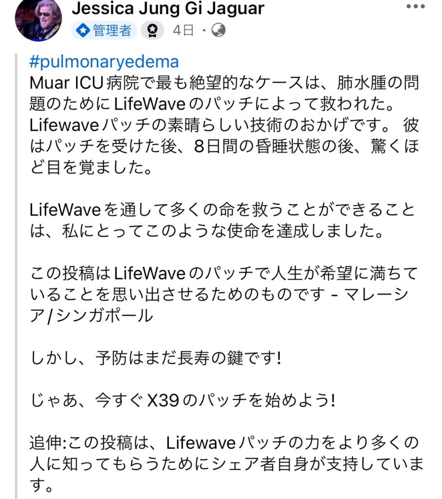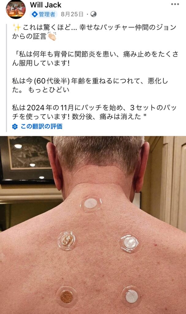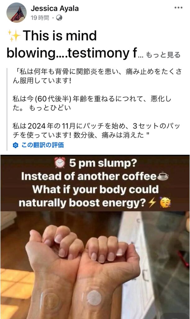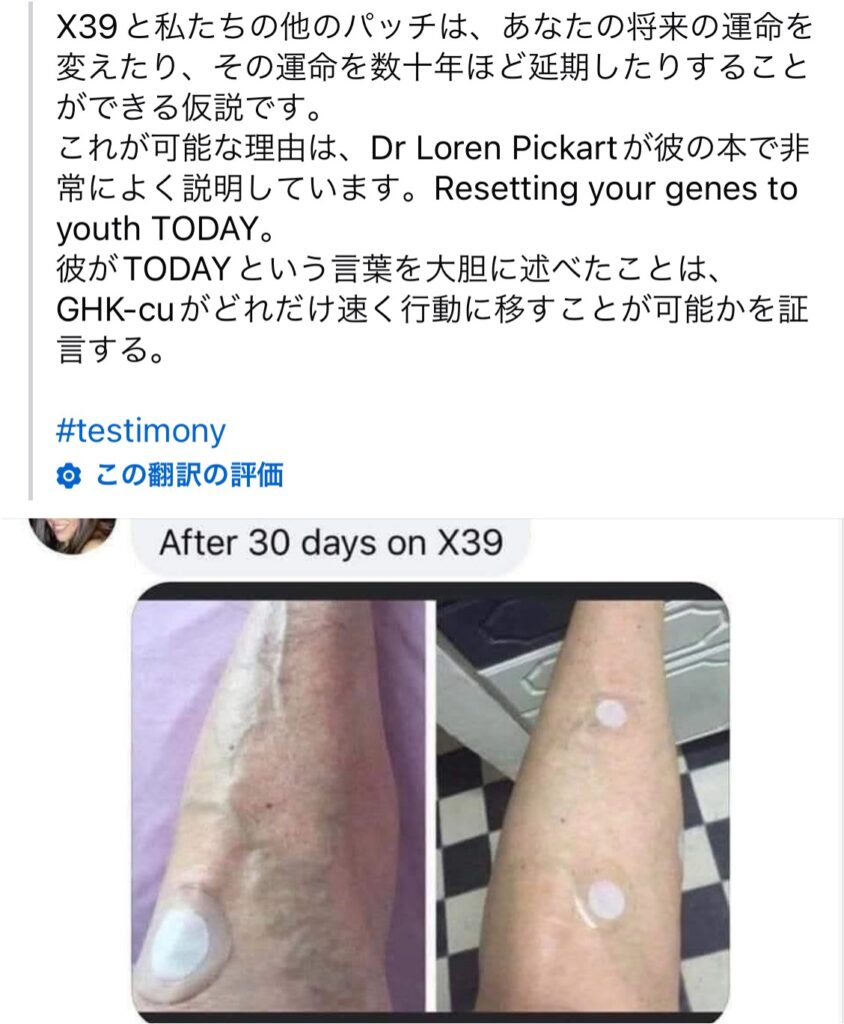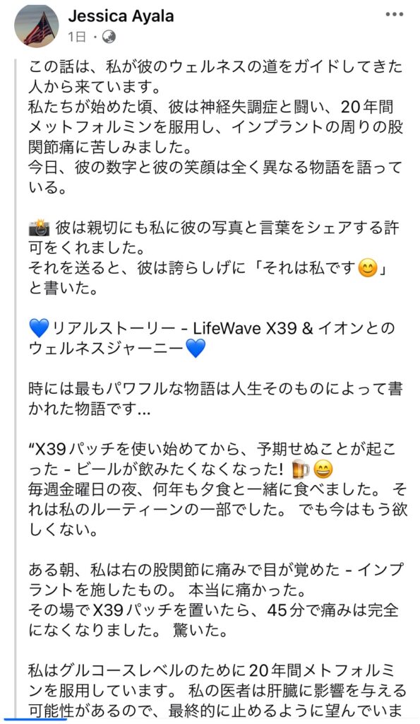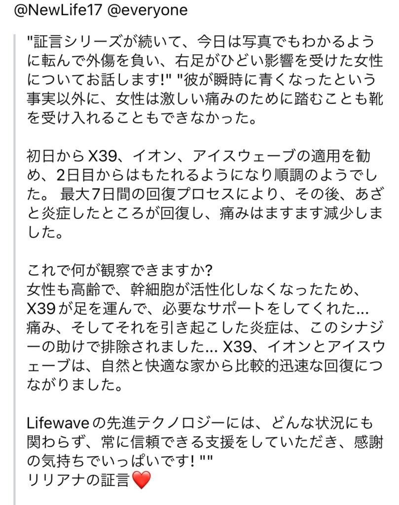 ライフウエーブパッチX39製品のフェイスブックに投稿された使用者からの報告の抜粋ページとなります。