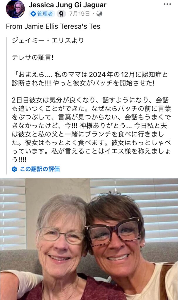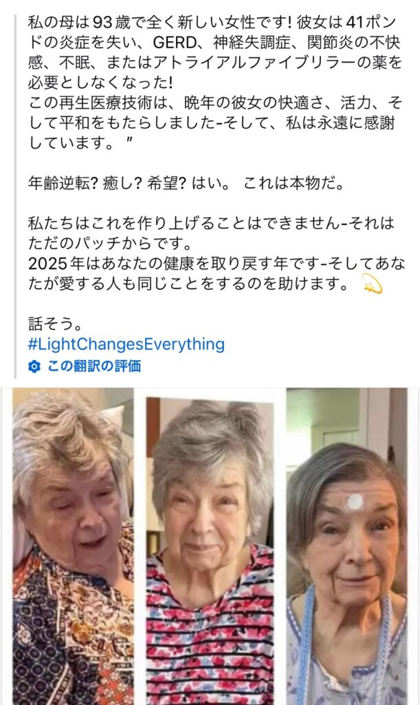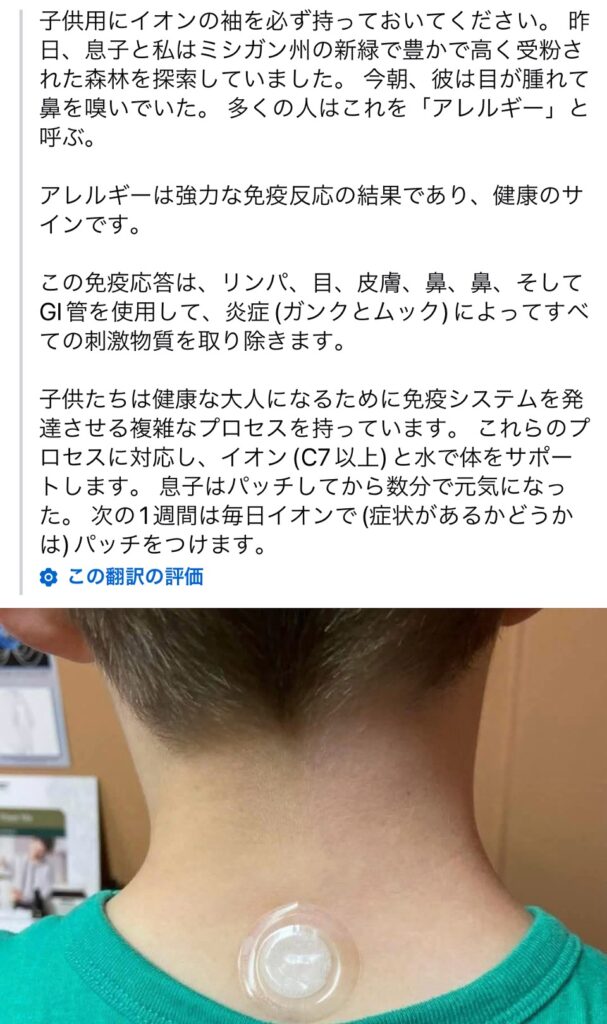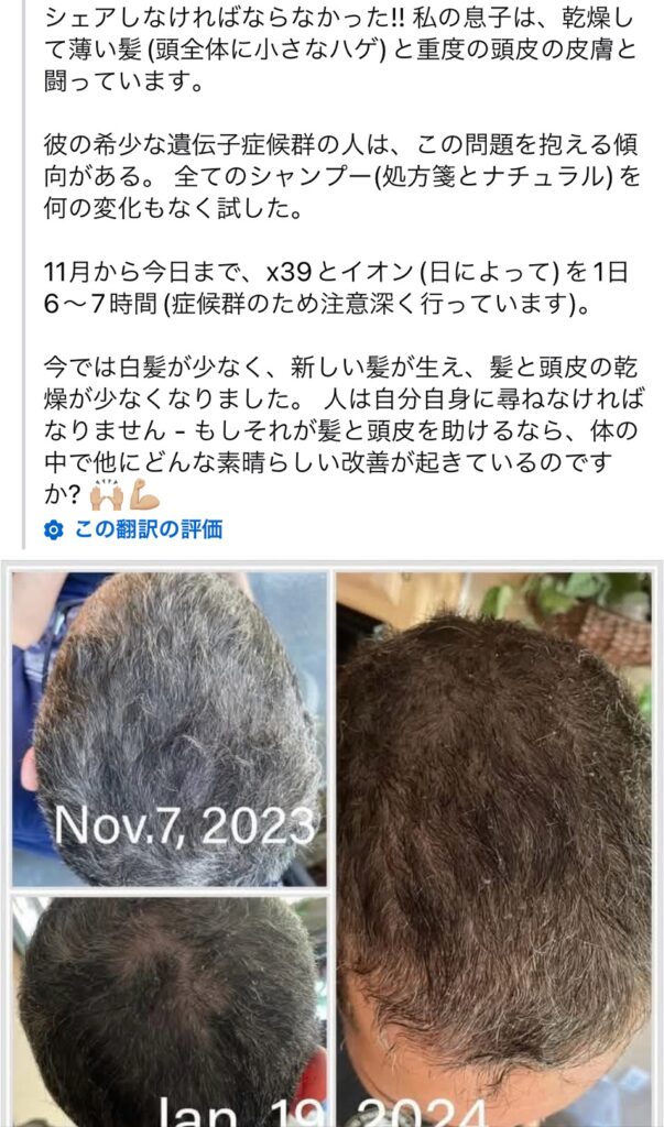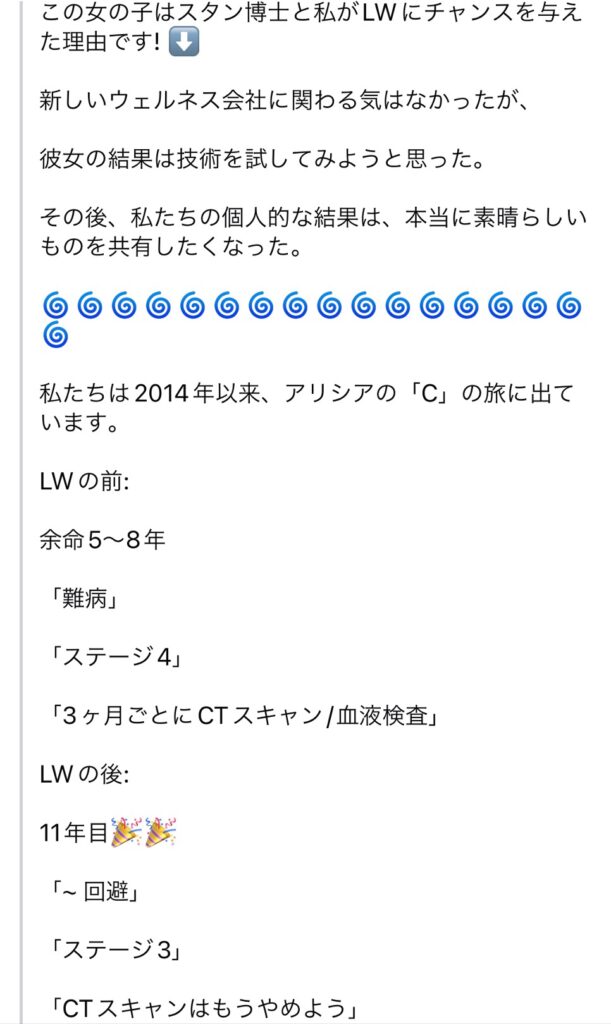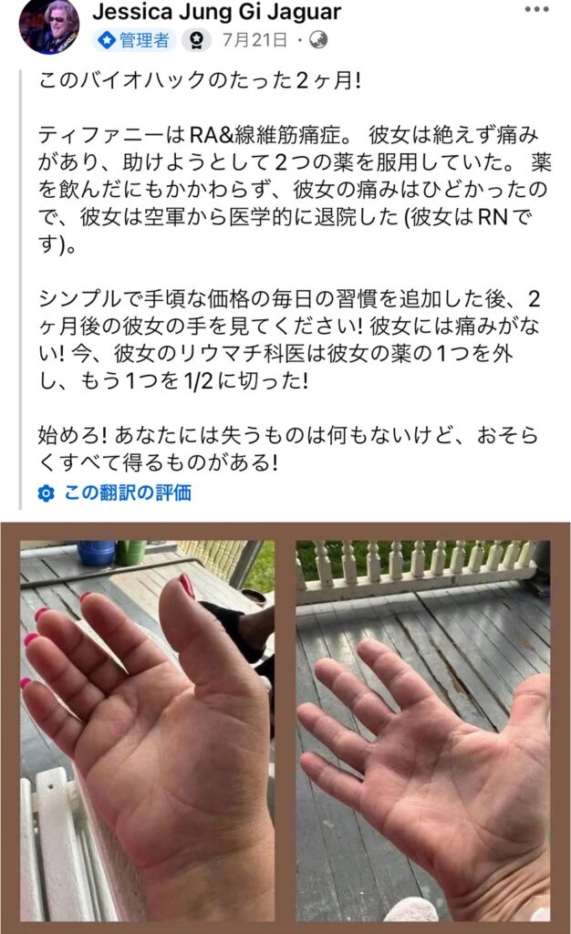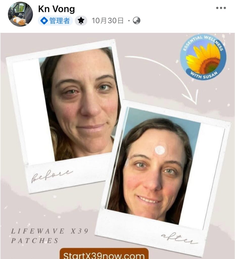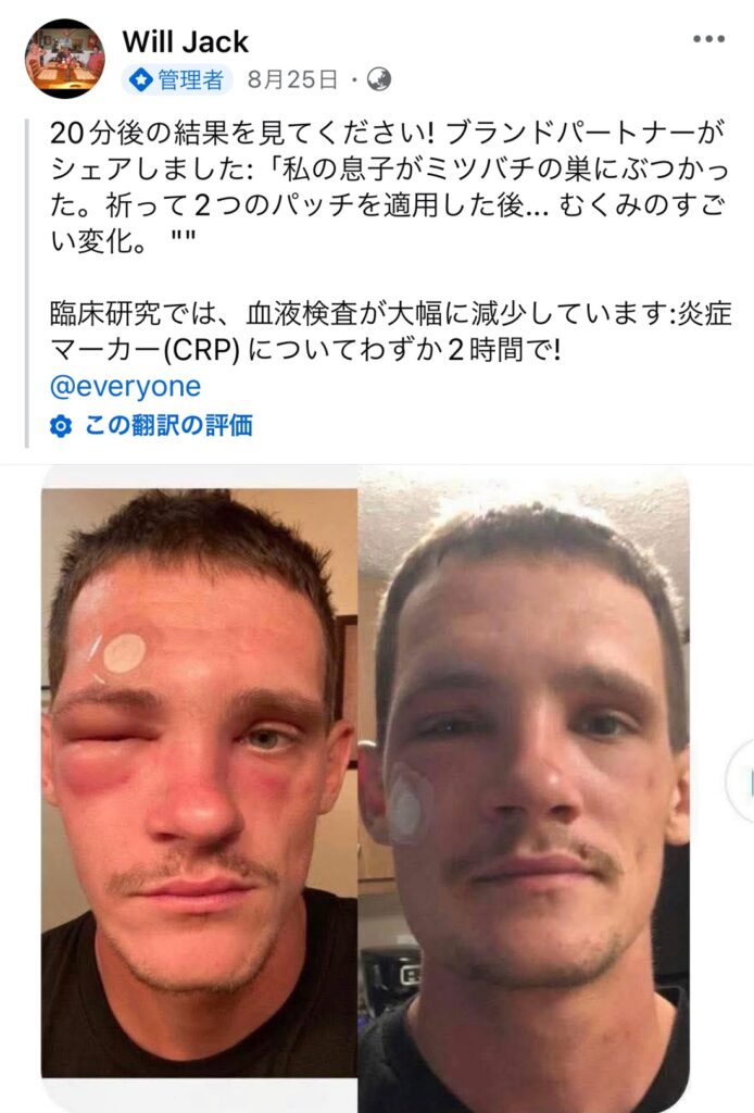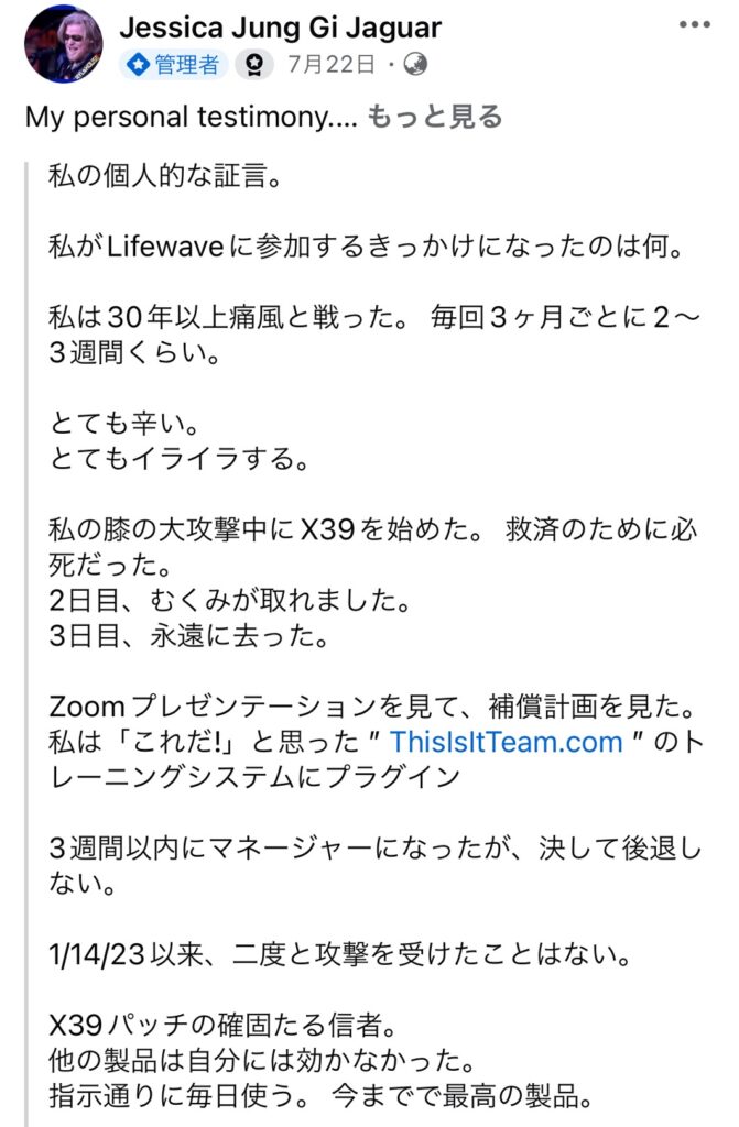 ライフウエーブパッチX39製品のフェイスブックに投稿された使用者からの報告の抜粋ページとなります。